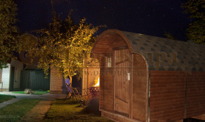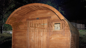 Дополнительный источник света в темное время суток, а также с подсветкой баня будет выглядеть еще более оригинальной.
