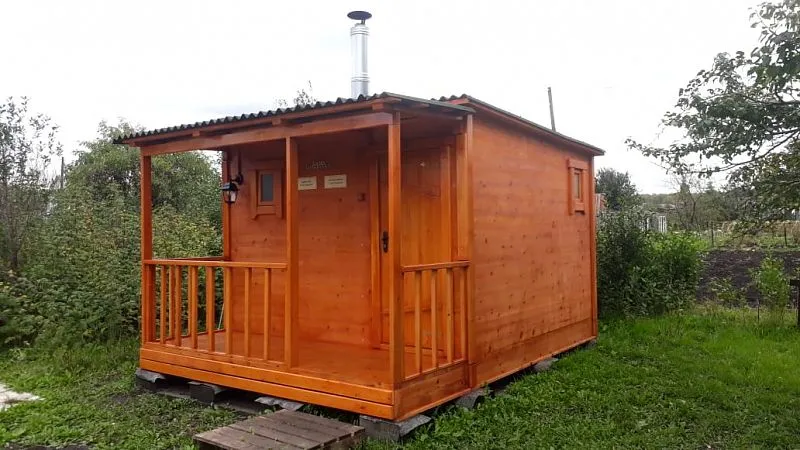 Это классическая прямоугольная модель бани с двумя отделениями: парилкой и раздевалкой. Для удобства пользования раздевалка оснащена лавочкой и вешалкой. Парилка оборудована двухуровневым открытым полком и печью. За счет небольшой конструкции баня нагревается в течении 30 минут. Ее можно заказать как в готовом, так и в разборном варианте. В разборной модели готовые щиты из кедра быстро собираются в полноценное строение, что также позволяет исключить лишний строительный мусор. Каркасно-щитовая баня не требует полноценный фундамент, поэтому при необходимости ее можно перенести в другое место.