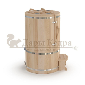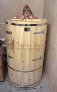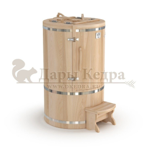 Круглая фитобочка представляет собой мини парную, которую можно использовать не только в спа-салонах, но и дома. Бочка изготовлена из древесины кедра без отбора по сучкам, поэтому такая модель считается более доступной. Фитобочка оборудована откидными створками, дверцей и отверстием для головы. Во время парения человек сидит внутри кедровой бочки, а голова находится снаружи. Благодаря этому исключается возможность перегрева. Подлокотники из кедра, встроенные ручки на створках и двери делают эксплуатацию более удобной.