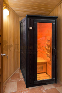 Это специально оборудованная кабина из липы для прогрева тела человека сухим теплом. Воздух в таких парных не нагревается. Инфракрасные лучи воздействуют на тело, равномерно прогревая мышцы, суставы и органы. Керамические излучатели похожи на лампы, имеют высокую температуру нагрева, поэтому защищены противоожоговыми решетками. Тело человека в таких саунах нагревается интенсивнее. Работает кабина за счет электричества. Компактная одноместная инфракрасная сауна с керамическими излучателями подойдет как для домашнего использования, так и для коммерции.
